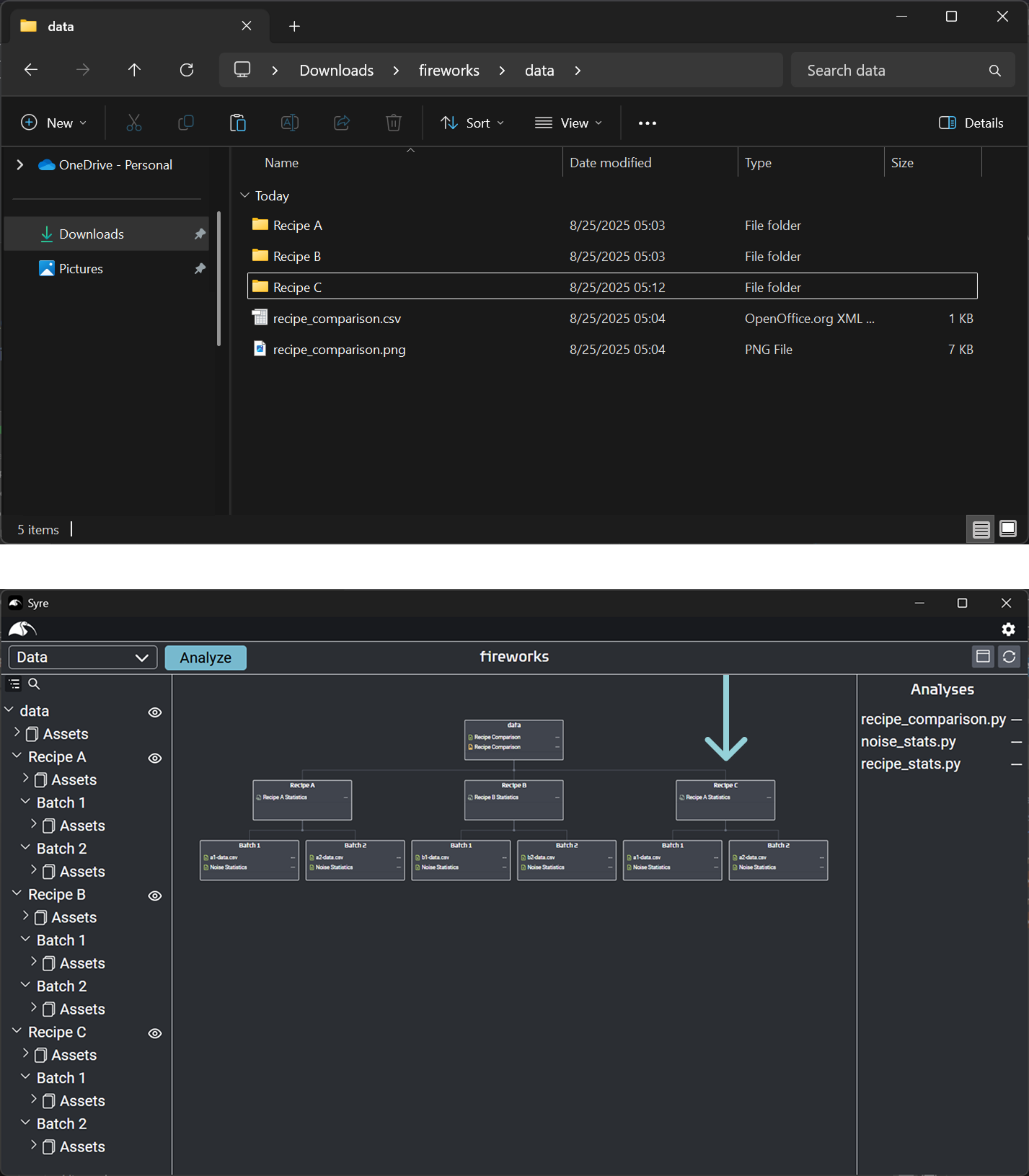 Syre sits on top of your file system, so any changes you make are reflected in Syre, and vice versa.